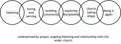 위의 그림은 교회의 새로운 표현(Fresh Expressions of church)를 실천하고 점검하고 발전시키는 전 과정에서 기준이 되는 지침을 담고 있다.